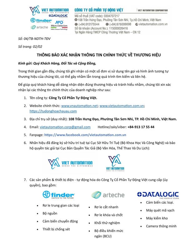 - Với cam kết tất cả các sản phẩm mà Tự Động Việt cung cấp đều chính hãng, đúng chất lượng, chưa qua sử dụng.